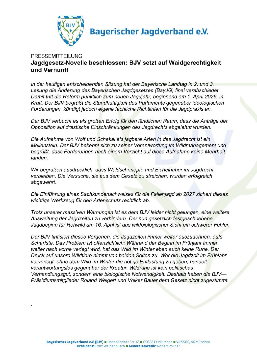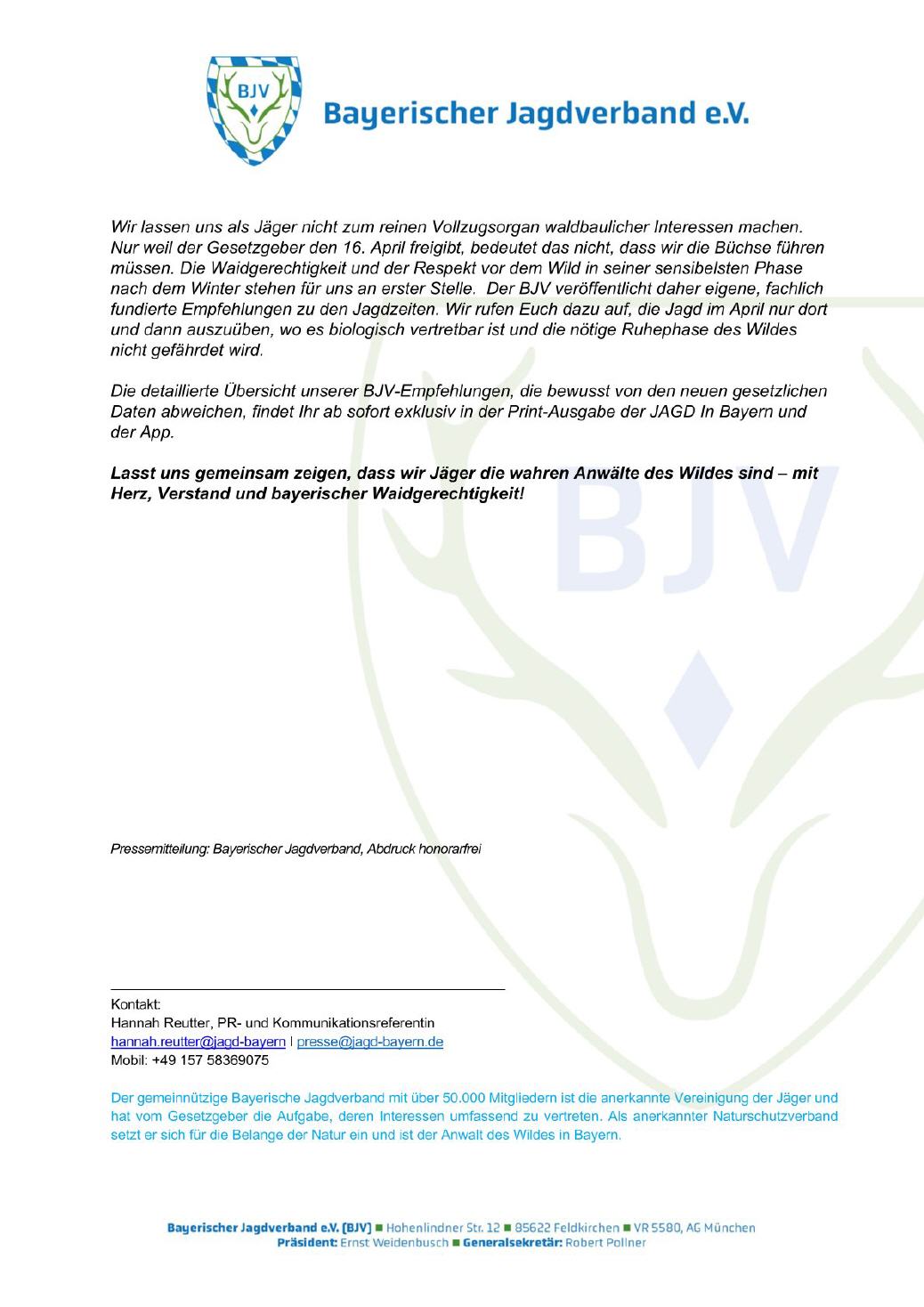 Hierzu nachfolgend die Pressemitteilung des BJV: